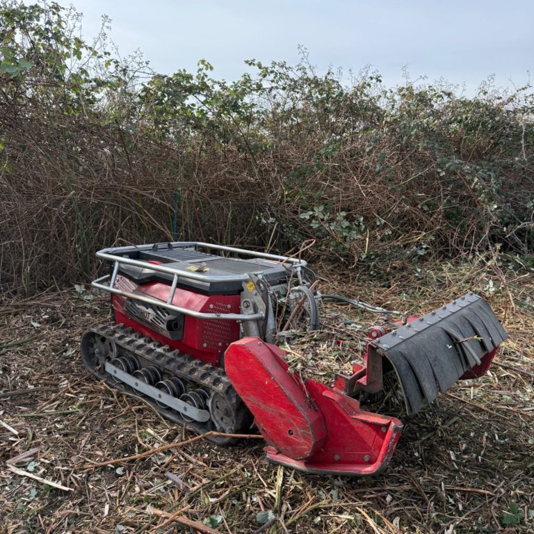 Bei Mulcharbeiten wird Gras, Bewuchs oder Gestrüpp zerkleinert und direkt auf der Fläche verteilt. Das Material dient als natürlicher Bodenschutz und verbessert die Bodenstruktur.